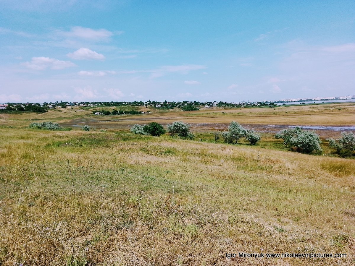 Что мы видим? Мы видим бурьяны, траву, пустую землю, деревья на низу и снова пустую землю, в общем, природу, такую какая она есть в Большой Коренихе, На склонах находится село Большая Корениха, которая является микрорайоном Заводского района города Николаева.
