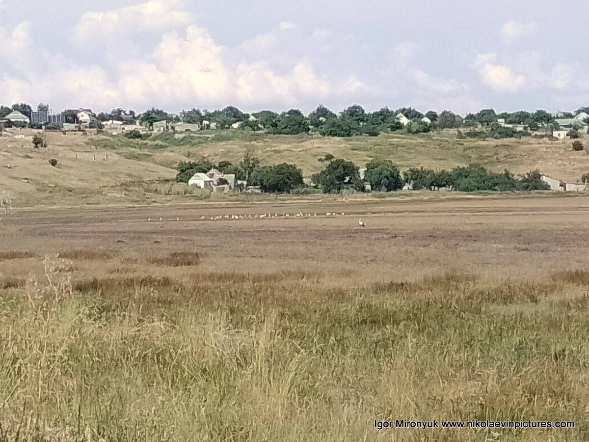 Там всё-таки есть вода! Но это больше напоминает болота. И, вдалеке, видно стаю белых птиц. Интересно!