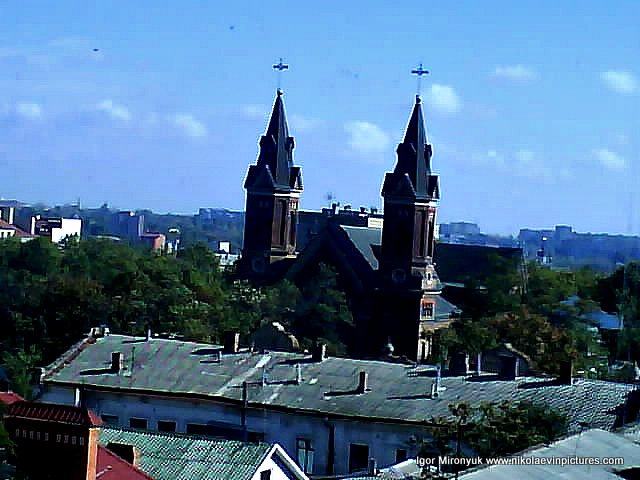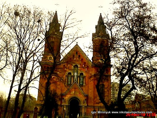 В 1896г. был сооружен Римско-католический костел по проекту одесского архитектора и художника В.А.Домбровского. Здание со стороны главного входа красуется двумя стройными готическими башнями с высокими коническими шпилями. Готические черты прослеживаются и в планировке, и в декоративном внешнем убранстве. (Готика осталась в средневековье, а те черты, которые она приобрела в середине и конце XIX века, обычно называют в архитектуре псевдоготическими). Костёл построен из красного кирпича в стиле модерн с элементами готики. Внутри храм был очень красив, во время службы играл орган, яркие стекла цветных витражей переливались в солнечных лучах. Мраморные полы и престол были привезены из Италии.