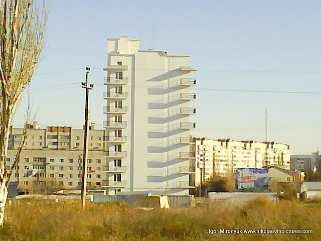 На этой ленте – центр города Николаев, таков какой он есть на самом деле, на которой выделяется голубой столб из воздуха да камня.