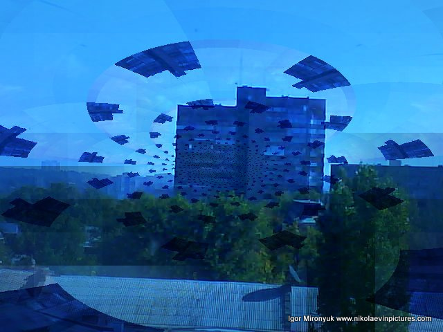 Десятой фотографии я придал фантастический вид: от высотки, стоящей в самом центре города движется какой-то круговорот.