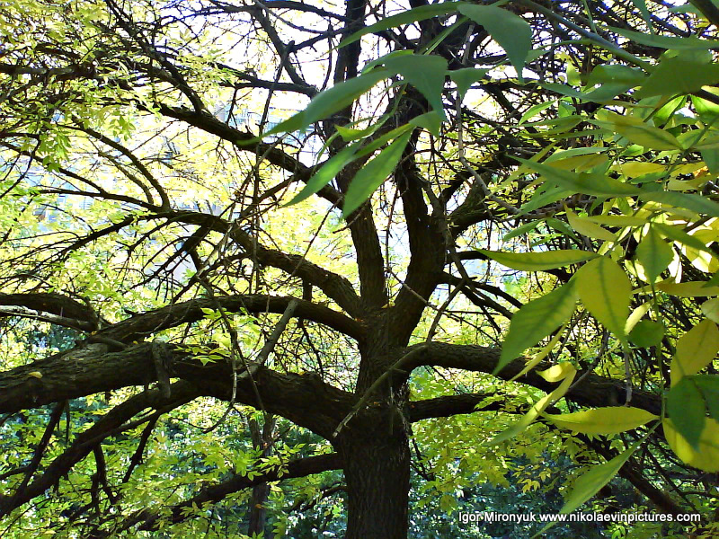 А вот стоит пожелтевший ясень, которого скоро не станет. И только снег на этом самом месте напомнит людям проходящим мимо, что когда-то здесь стояло дерево, а возможно даже два, листва, которых слилась в одно целое и впечатляет…