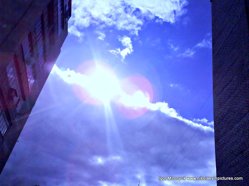 выглядывает солнце, которое своими лучами светит мне в лицо. Как видите, на фотографии отражены лучи солнца, исходящие от него самого в ярком свете.