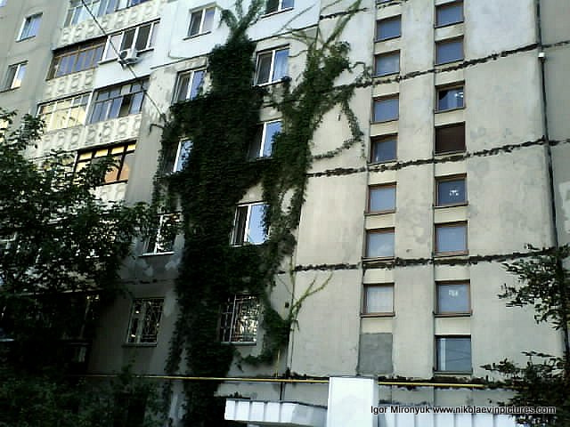 Я специально при корректировке сделал жилое пятиэтажное здание чёрно-белым, чтобы было похоже на портрет ушедших времён.