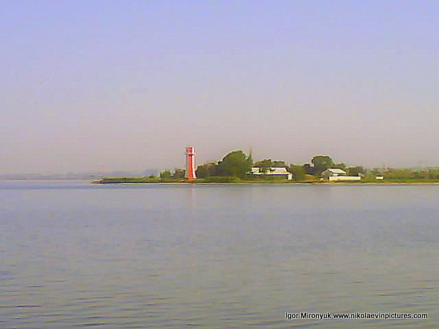 А вот он маяк справа от меня. Красный. И этот комочек земли, на котором он находится, омываемый водами Южного Буга, похож на остров.