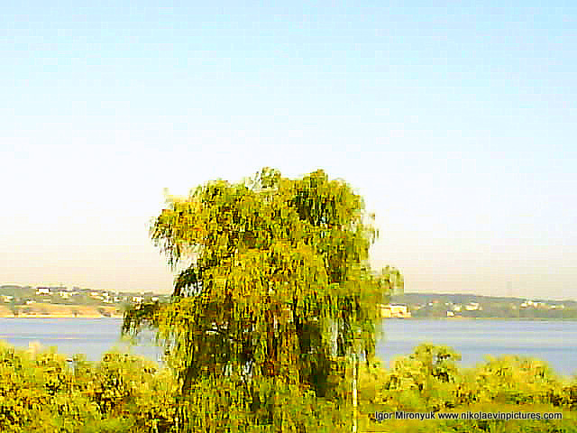Эта зелёная ива стала некстати, в центре фотографии. И учитывая это, она пересекает реку, так что главный акцент делается на этом дереве.
