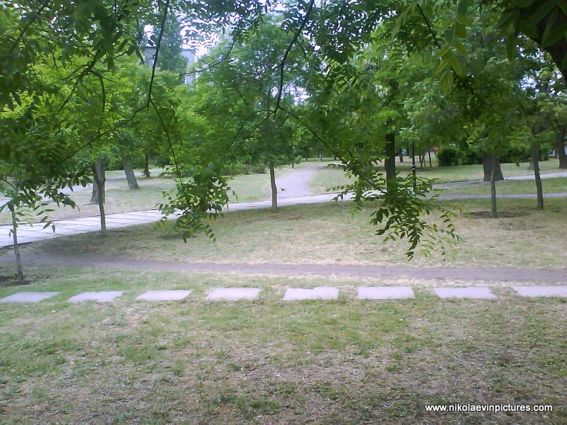 Перед районом и сбоку от сквера имени Шуры Коберы и Вити Хоменко, есть ещё один сквер: Сквер имени Тараса Шевченко. Став в самом начале сквера, я фотографировал… но потом удалял. Как-то смотрится не классно. И потому я перешёл дорогу и вернулся в соседний сквер.
