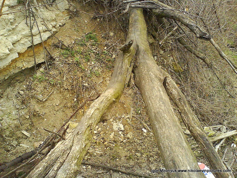 Не отрицаю, были у меня мысли залезть на это дерево и может, я что увижу, то, что не вижу снизу. Но я всё-таки вернулся к моей первой мысли. Присев, я опирался одной рукой об ветку поваленного дерева, ногой уже пробовал другую ветку, та, что снизу. Убедившись в её прочности, я спрыгнул.