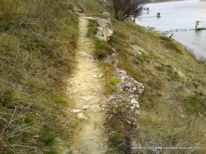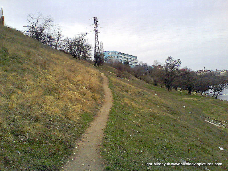 А тут всё просто: белые тропинки, просекающие зелёный покров, внизу, там, где вода, берег обрастает камышами. Ну, и главное – река Ингул, омывает полуостров, на котором я сейчас нахожусь. Забавно, да?