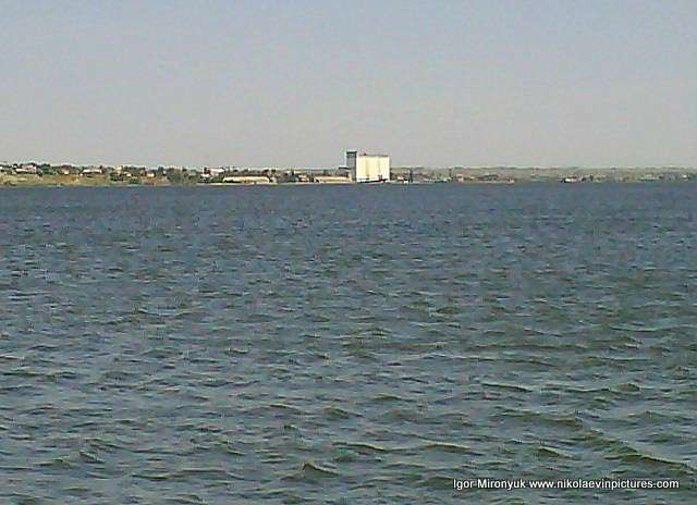 Очень удачная фотография, вы не находите? Квадратом здесь выделена вода реки Южный Буг, углом – берег, зелень и жилой массив Намыв, а всё остальное – это небо, такое же чистое и светло-синего цвета как и сама вода.