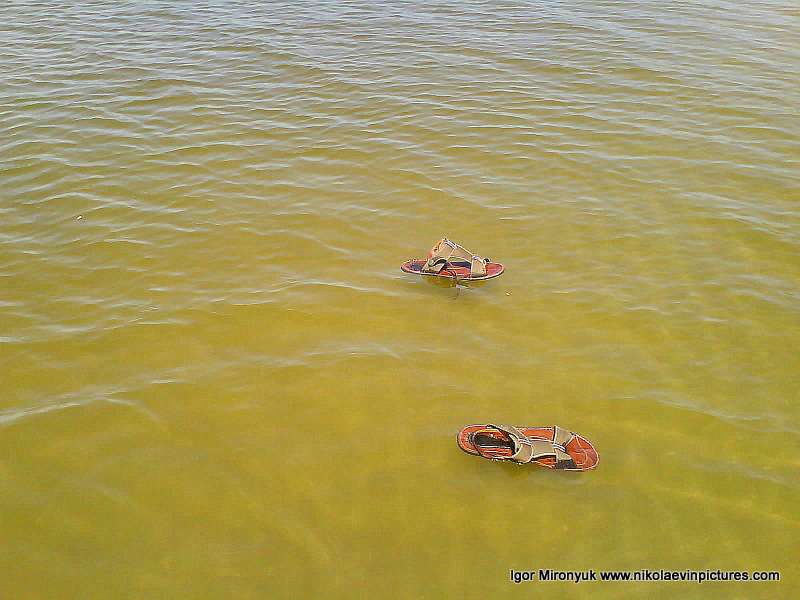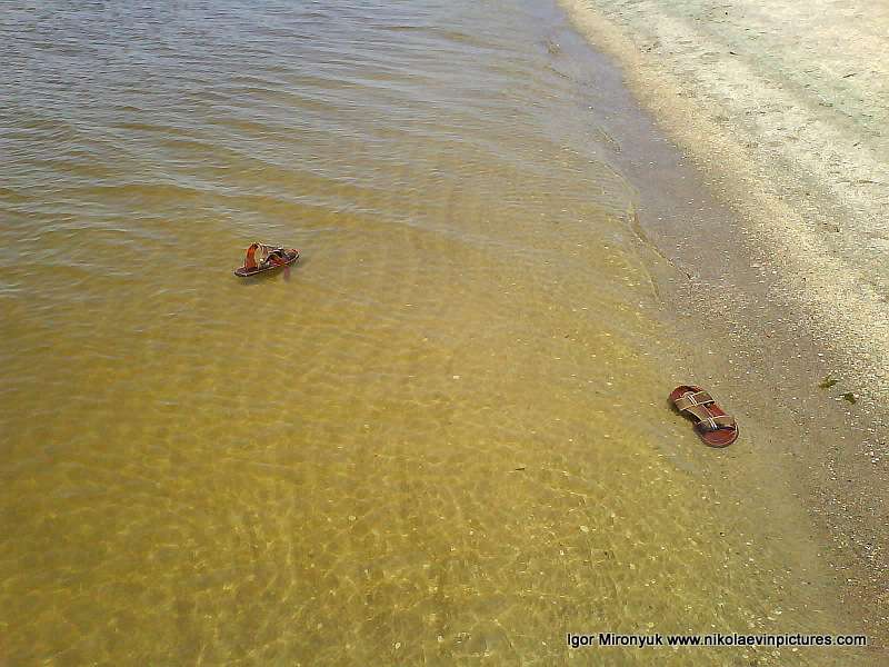Я посмотрел снова на свою обувь и заметил, что правая уже в метре от берега, а левая только-только отплывает. И я снял свою обувь с воды, снова взяв в руку.