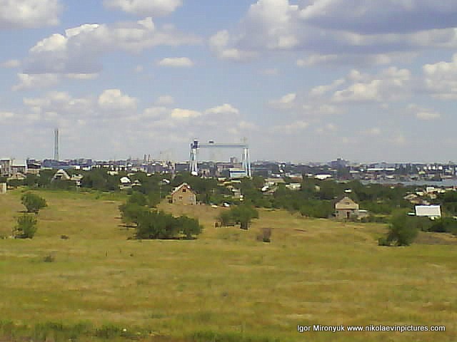 Привлекли моё внимание длинные холмы, которые я увидел через окно. Я перешёл дорогу и пошёл по земляной дороге, которая вела меня наверх. Слева от меня ничего нет, кроме как растёт зелёная трава, и холмы становятся ближе, а справа – дома, с которых и начинается Малая Корениха. Вдали, над домами возвышается синий кран Черноморского судостроительного завода.