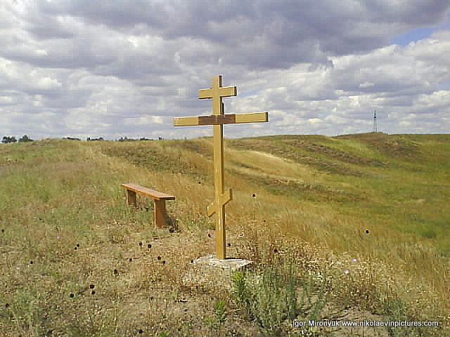 Я полюбопытствовал подойти поближе и узнать, что написано на кресте. А на кресте была написана информация об этом месте. Оказывается, здесь в 1855 году по проекту инженера Эдуарда Ивановича Тотлебена были построены пороховые погреба, артиллерийские батареи и редуты, входившие в систему оборонительных сооружений вдоль Бугского лимана для защиты Николаева от англо-французских захватчиков.